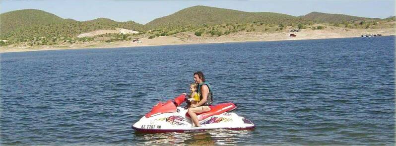 Das anstehende Wochenende verbringen wir mit unseren Freunden am „Lake Pleasant“, einem Stausee und Naherholungsgebiet nördlich von Phoenix. Mit einem Jet Ski haben wir die Möglichkeit den See zu erkunden. Am letzten Tag vor unserer Abreise besuchen wir Rene und Jens auf ihrer Ranch. Wir entspannen uns am Pool und am Abend gibt es leckere T-Bone Steaks vom Grill mit reichlich Büchsenbier. Linda fällt an diesem Abend der Abschied besonders schwer, da sie von den Ausritten auf "Mr. Man" nicht genug bekommen kann.