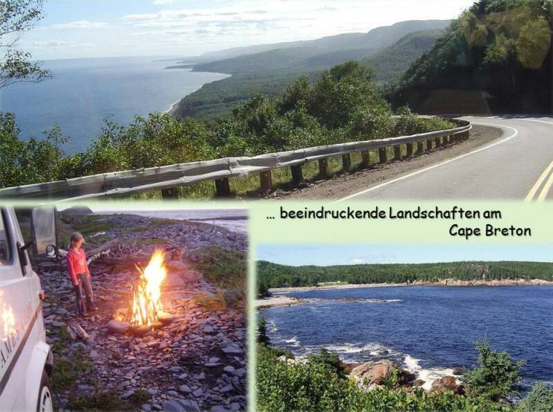 Am südlichsten Zipfel der Insel nehmen wir die Fähre nach Nova Scotia. Von dort geht es hoch an das „Cape Breton“ in den gleichnamigen NP. Es ist eine schöne Fahrt mit vielen Aussichtsplätzen, den sogenannten „Look Outs“. Kurz vor dem nördlichsten Punkt der Insel entdecken wir den perfekten Übernachtungsplatz – direkt an der rauen Küste zum „St. Lawrence Golf“. Während wir Treibholz für das abendliche Lagerfeuer sammeln, erleben wir einen unvergesslichen Sonnenuntergang.