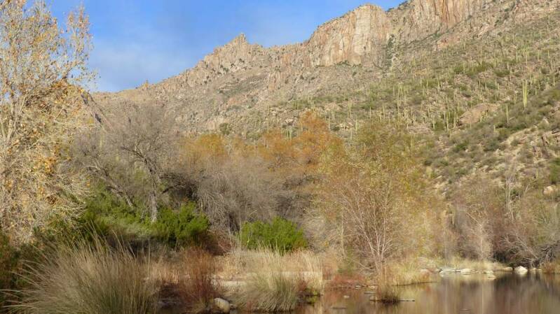 Gemeinsam besuchen wir östlich von Tucson den "Sabino Canyon", am Fuße der Santa Catalina Mountains. Mit einem „Shuttle“ lassen wir uns bis an das Ende des Canyon bringen. Zwischenzeitlich zeigt sich auch die Sonne strahlend am Himmel, so dass es für die Jahreszeit doch sehr angenehm warm ist. Zu Fuß gehen wir die etwa 6km wieder zurück und erleben den Canyon, wie auch die angrenzenden Berge mit ihrem Bewuchs, in einem äußerst angenehmen Licht.