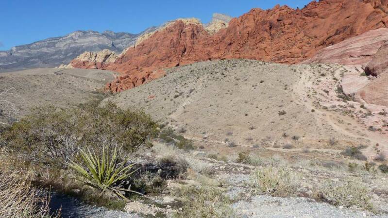 Nach einem typischen amerikanischen Frühstück machen wir uns am nächsten Morgen auf den Weg in die westlich gelegene „Red Rock Canyon National Conservations Area“. Dieses Schutz- und Erholungsgebiet hat den Status eines Nationalparks. Wie der Name es schon verrät erwartet uns dort ein Canyon, der in den rötlichen Felsen der Spring Mountains eingebettet ist. Eine etwa 20km lange „Scenic Road“ führt durch den Park, von wo aus wir herrliche Aussichten auf die schönen Felsformationen erhalten. An einem der zahlreichen Parkplätze halten wir an und unternehmen eine längere Wanderung.
