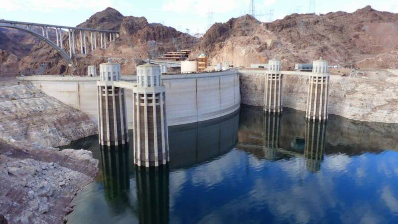 Tags darauf machen wir uns auf den Weg gen Süden. Vorbei am „Lake Mead“ und unmittelbar an der Grenze zu Arizona liegt der „Hoover Dam“. Im Schritttempo geht es über die imposante Staumauer, die an dieser Stelle den "Colorado River" zurückhält. Das dort entnommene Wasser sowie das Kraftwerk bilden die Lebensversicherung der Wüstenmetropole Las Vegas.