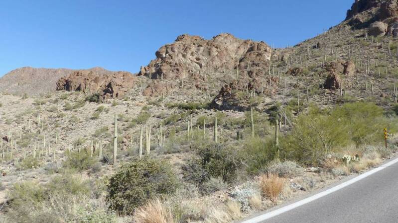 Unmittelbar daneben windet sich die Straße hoch zum "Gates Pass" – gesäumt von unzähligen Prachtexemplaren dieser größten Kakteenart der Welt. Von hier oben geht es direkt nach Tucson hinein.