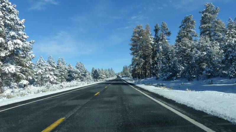 Langsam heißt es erneut von Prescott Abschied zu nehmen. Doch bevor wir uns wieder auf den Weg nach Las Vegas machen, steht noch ein weiteres Highlight an – der Grand Canyon im Schnee. Obwohl wir schon zu allen Jahreszeiten mehrfach hier waren, strahlt der Canyon in seinem Winterkleid eine noch größere Faszination aus. Da in den Wintermonaten das höherliegende "North Rim" sowieso geschlossen ist, besuchen wir das "größte Loch der Welt", wie der Canyon scherzhafterweise auch genannt wird, an der Südseite. Ein weiterer Vorteil hat der Winter, dass wir die 11km lange "Hermit Road" in voller Länge mit dem eigenen Fahrzeug abfahren dürfen. Im Sommer ist diese Panoramastraße nur mit einem Shuttlebus befahrbar. An den vielen dort befindlichen "Overlooks" erhalten wir grandiose Ausblicke in und über den Grand Canyon.