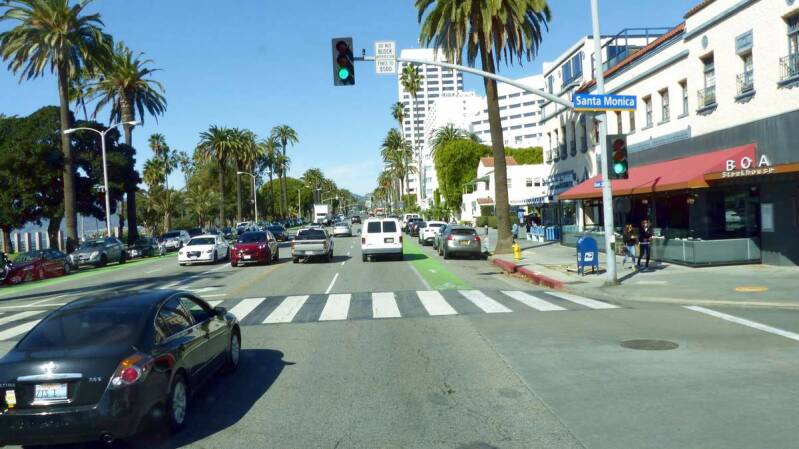 Nun durchfahren wir eine der größten Metropolen Nordamerikas, Los Angeles. Es geht durch Santa Monica und Beverly Hills bis nach Hollywood hinein. Hier sehen wir das große HOLLYWOOD Schild, das weithin sichtbar über diesem Stadtteil thront. Den „Walk of Fame“ schenken wir uns. Es ist nahezu unmöglich, für unser Fahrzeug einen geeigneten Parkplatz zu finden – also, nichts wie raus aus der Stadt.