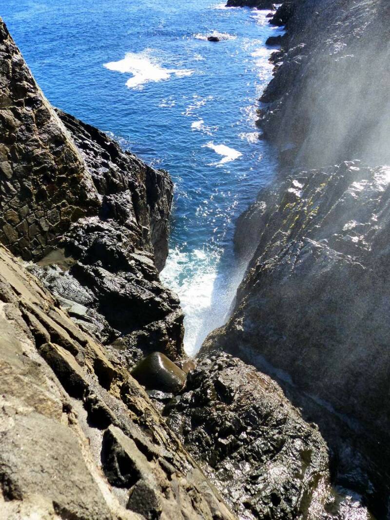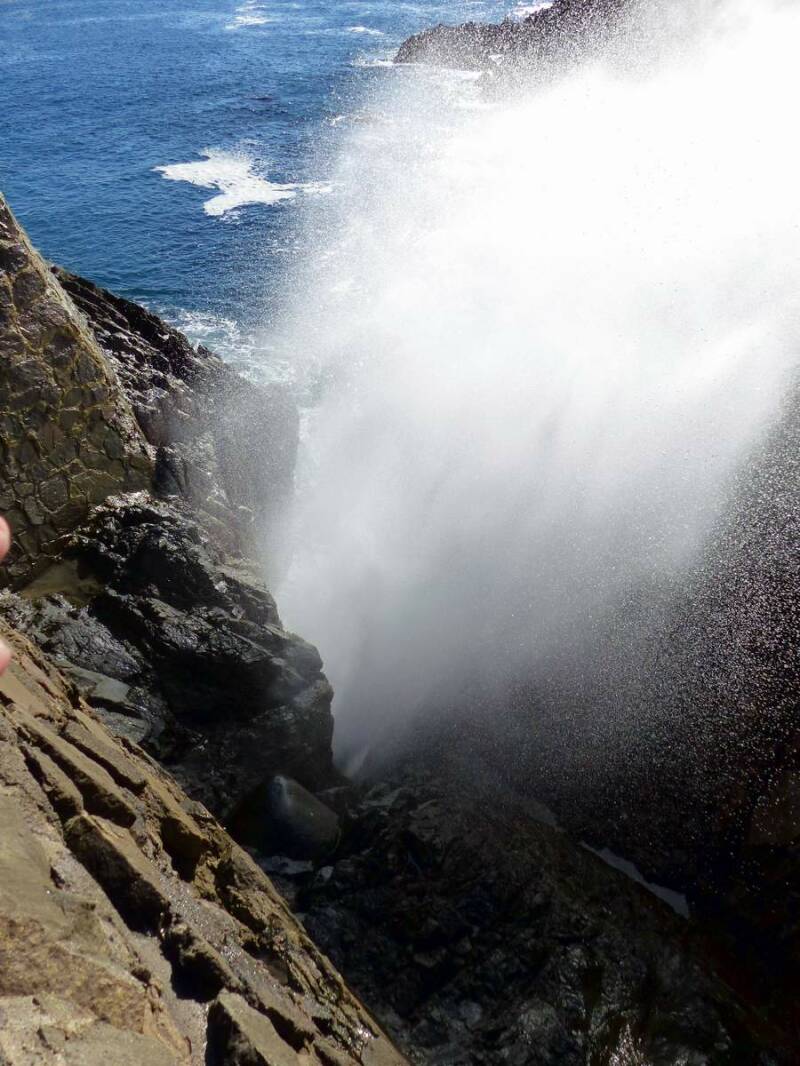 Am nächsten Tag fahren wir auf eine kleine Halbinsel südlich von Ensenada, zur „La Bufadora“. Dort gibt es eine Felsformation, aus der das Wasser der ankommenden Wellen bis zu 30m in die Höhe gepresst wird. Leider hat sich dieses Naturschauspiel zu einem riesigen Rummelplatz entwickelt – wirklich schade.