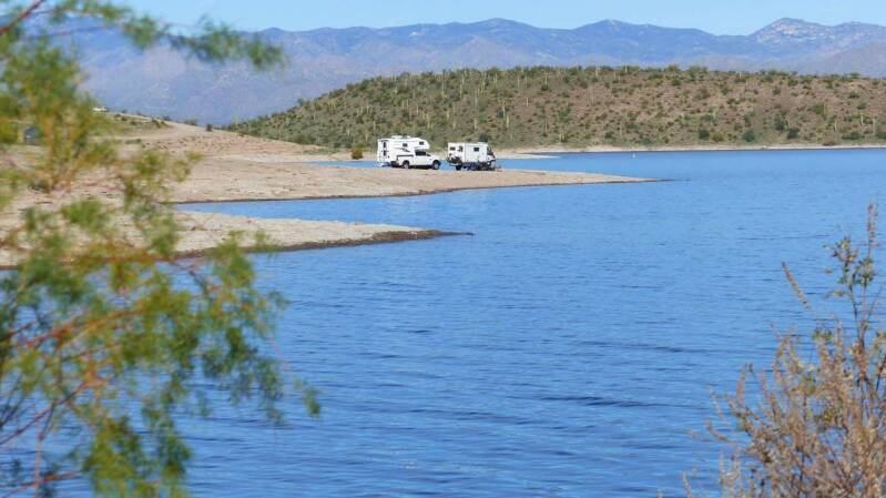 Nach all den Feierlichkeiten und dem Trubel, verbringen wir nun noch einige Tage mit Linda und mit Sandra & Don am Lake Pleasant mit entschleunigtem Campen. Wir genießen die wieder eingekehrte Ruhe bei angenehmen Tagestemperaturen und am Abend machen wir es uns am Lagerfeuer gemütlich.