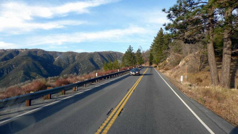 Über Palm Springs, vorbei an tausenden von Windgeneratoren, geht es hoch in die San Bernadino Mountains, an den „Big Bear Lake“. Die Landschaft ist fantastisch und das Fahren ein reines Vergnügen.