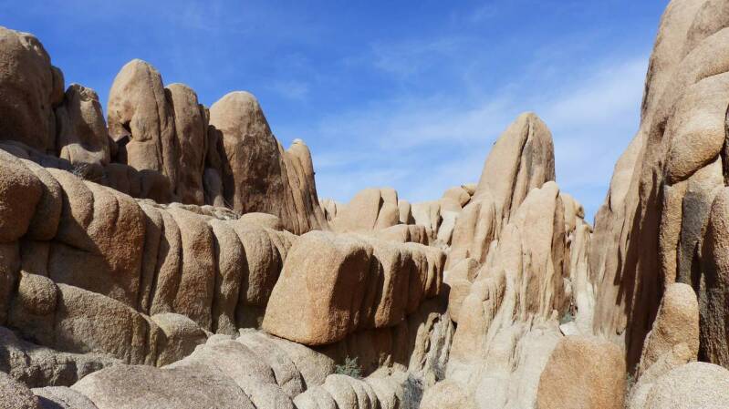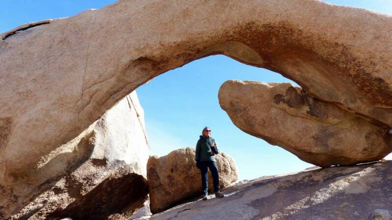 Auf unserer Fahrt gen Süden, kommen wir eher zwangsläufig durch den „Joshua Tree NP“. Obwohl wir diesen Park 2005 bereits besuchten, bleiben wir ein paar Tage. Neben der hohen Dichte an den großen „Joshua Tree Palmlilien“ und den großen „Cholla Kakteen“ die momentan blühen, gibt es auch hunderte von Kilometern an Wanderwegen. Immer wieder treffen wir auf größere Felder von s.g. „Boulders“. Vom höchsten Punkt des Parks, „Keys View“, hat man einen sehr guten Ausblick auf den „San Andreas Graben“.