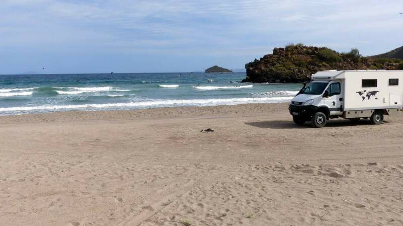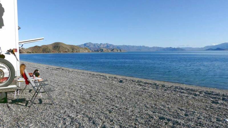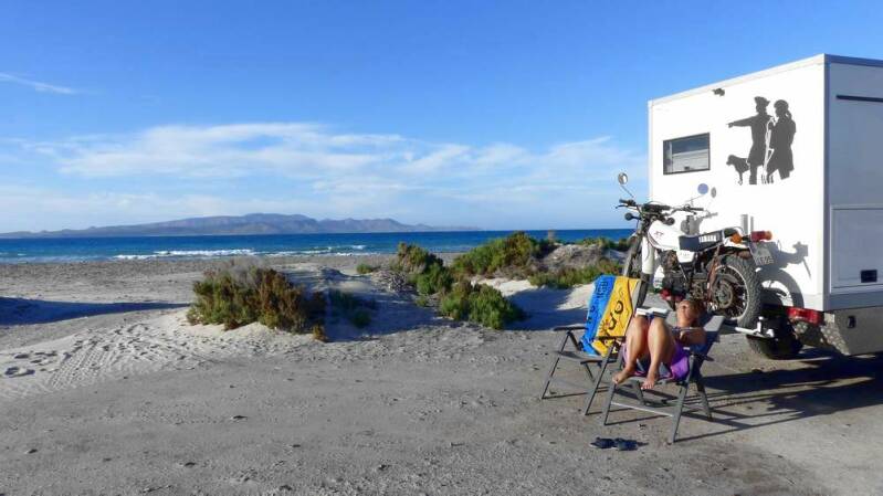 Nachdem wir in der Stadt alles Notwendige erledigt haben, machen wir uns auf den Weg an einen der bekanntesten Strände von La Paz, dem „Playa Tecolote“. Hier kommen wir nicht nur mit neuen Langzeitreisenden zusammen, sondern treffen auch wieder alte Bekannte. Durch den ständigen Erfahrungsaustausch, sei es am abendlichen Lagerfeuer oder bei einem Bierchen im Stehen, halten wir uns gegenseitig auf dem Laufenden – die Bedeutung des „social distancing“ ist uns zu diesem Zeitpunkt noch absolut unbekannt.