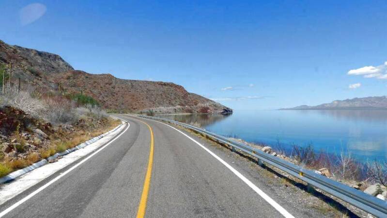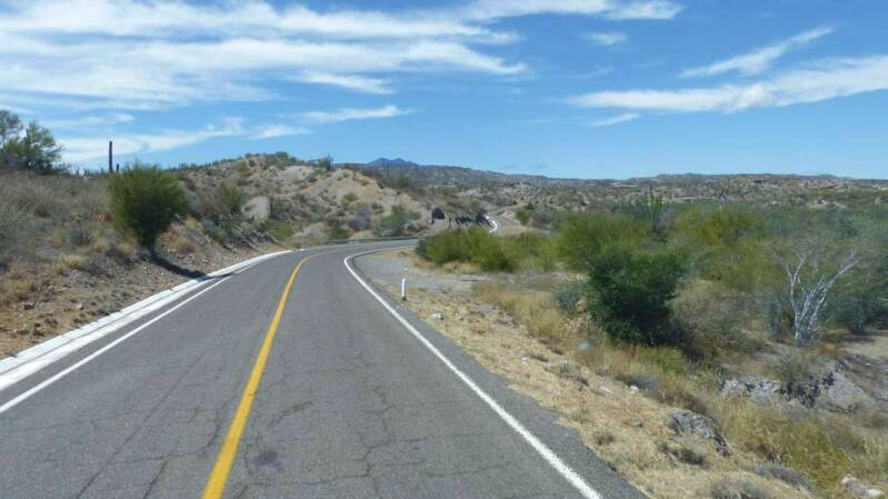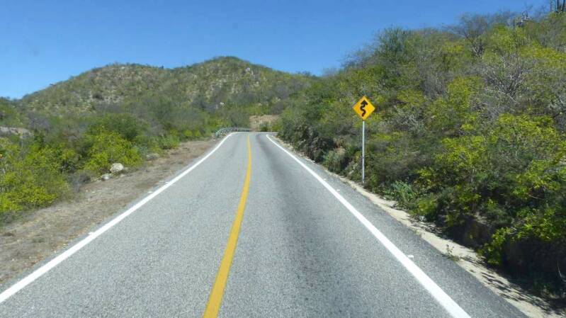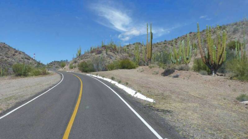Wir machen uns auf den Weg, den südlichen Zipfel der Halbinsel zu umrunden. Zu Beginn folgen wir weiter der „Mex1“. Es geht an der sehr gut erhaltenen und von weitem schon sichtbaren Mission „El Triunfo“ im gleichnamigen Ort vorbei. Die zumeist hügelige und kurvenreiche Strecke ist wunderschön und bietet uns auch hier immer wieder herrliche Ausblicke auf das Meer.