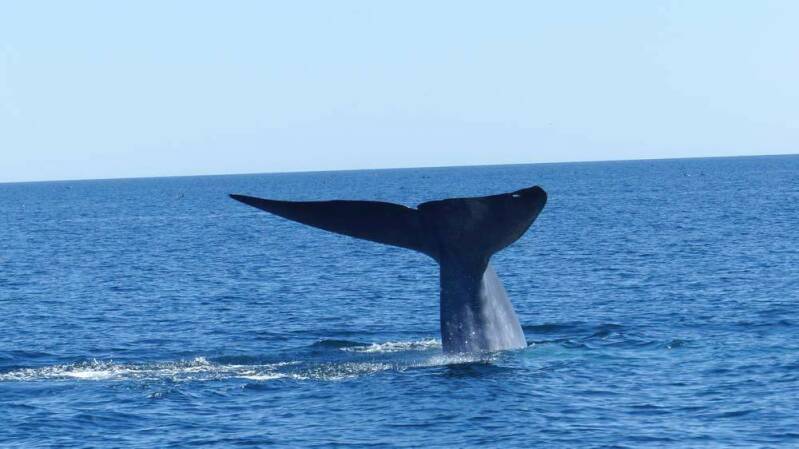 Schon nach einer guten Stunde Anfahrt mit dem Boot, bekommen wir den ersten Giganten der Weltmeere zu Gesicht – einen Blauwal. Mit bis zu 130 Tonnen ist dieser das größte Lebewesen auf unserem Planeten und kann weltweit nur an wenigen Orten so einfach beobachtet werden wie hier. Klar, ein so mächtiger Koloss ist nicht in der Lage, große Sprünge zu machen. Daher bekommen wir die Blauwale nur beim Atmen und beim Abtauchen zu sehen.