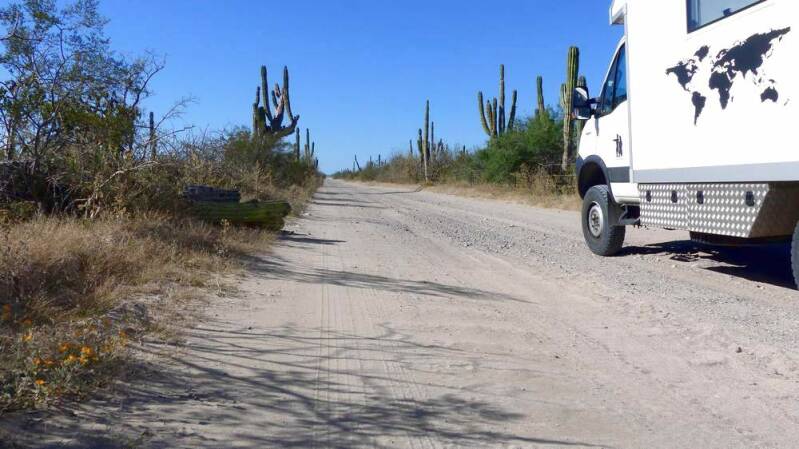 Auf der Weiterfahrt nach Süden geht es nun durch die unterschiedlichsten Landschaften. Teilweise sind es landwirtschaftlich genutzte Regionen und kurz darauf fahren wir schon wieder durch wunderschöne mit Kakteen bewachsene Gebirgslandschaften. Zu den herrlich gelegenen Stränden führen jedoch ausschließlich unbefestigte Schotter- oder Sandpisten.