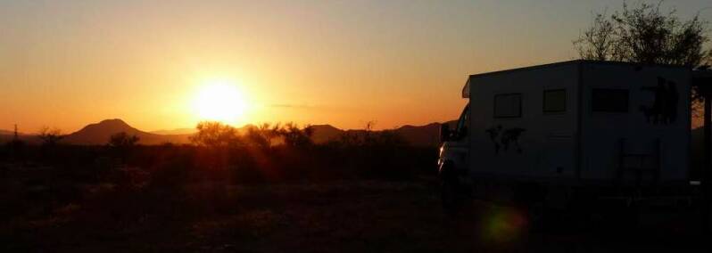 Auf unserer Weiterfahrt überqueren wir nun den „Tropico de Cancer“, den Wendekreis des Krebses oder auch nördlicher Wendekreis genannt. Ab jetzt befinden wir uns im subtropischen Bereich der Nordhalbkugel. Von hier ist es nicht mehr weit bis nach Cabo San Lucas, dem südlichsten Ort der Baja California und gleichzeitig der südlichste Punkt unserer Reise. Dort endet nun auch die „Mex1“, der wir seit dem Grenzübertritt aus den USA über 1.700km gefolgt sind. Von unserem dortigen Übernachtungsplatz erleben wir einen tollen Sonnenaufgang mit Blick auf die südlichsten Felsen der zweitlängsten Halbinsel der Welt.