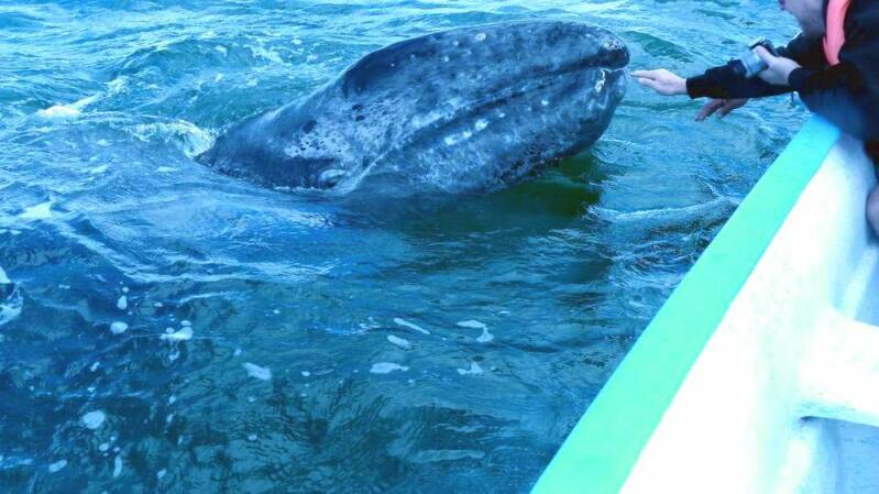 Von der Bahia Concepción aus legen wir einen Zwischenspurt ein und fahren nochmals in die etwa 350km entfernte Bucht „Ojo de Liebre“ bei Guerrero Negro. Die Fahrt ist alles andere als langweilig. Nach einem längeren Stück entlang der wunderschönen Golf Küste, führt uns die „Mex1“ wieder ins Landesinnere hinein. Über San Ignacio erreichen wir die Bucht, an der wir bereits sechs Wochen zuvor schon Grauwale beobachtet hatten. Zwischenzeitlich haben die Walkühe ihre Jungen bekommen. Diese nähern sich äußerst neugierig den Besucherbooten – aber immer unter den wachsamen Augen der Mütter. Auch die Fischadler in der näheren Umgebung sind jetzt dabei, den Familienzuwachs zu versorgen.