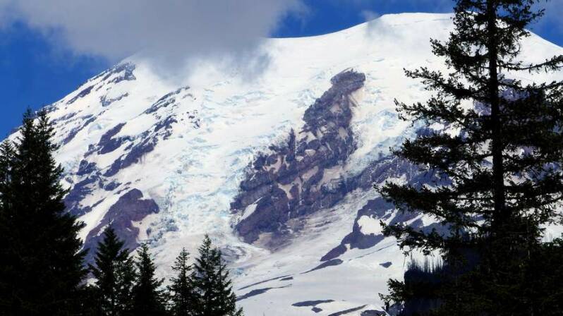 Den letzten Vulkan den wir auf unserer nicht vorgesehenen Rundfahrt besuchen, ist der fast 4.400m hohe "Mt. Rainier" im gleichnamigen National Park. Wie in den meisten Parks zuvor sind auch hier, aufgrund der immer noch vorhandenen Schneemaßen, einige Straßen und Wanderrouten gesperrt. Das Besondere am höchsten Vulkan des nordamerikanischen Feuerrings ist nicht nur seine wunderschöne Silhouette, sondern auch die Tatsache, dass seine umgebenden Gletscher nach wie vor ungewöhnlich schnell anwachsen.