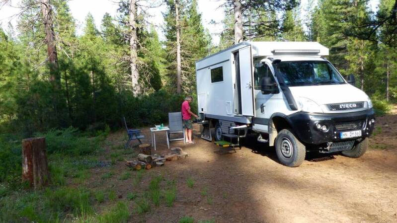 An einem fast unscheinbaren Bergsee, fernab vom Trubels des Lake Tahoe, finden wir ein nettes Plätzchen. Schon die Anfahrt auf knapp 2.100m dorthin, ist wieder mal sehr rustikal. Eigentlich haben wir vor, für ein paar Tage hier oben zu verweilen. Doch schon am zweiten Morgen brechen wir wieder auf und begeben uns in tiefere Regionen. Es ist bitterkalt geworden und über Nacht hat es sogar geschneit. Zur Erinnerung, wir haben Mitte Juni und befinden uns zudem in Kalifornien!