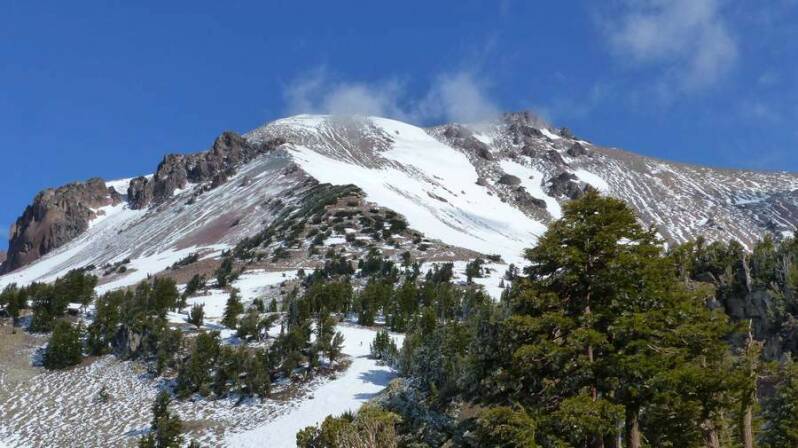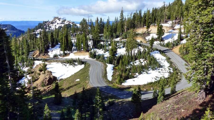 Wir begeben uns jetzt auf die nordamerikanische „Straße der Vulkane“ in nördlicher Richtung. Hier verläuft der pazifische Feuerring mit teilweise noch sehr aktiven Vulkanen. Unser erster feuerspeiender Berg ist der Vulkan „Lassen“ im gleichnamigen National Park. Erst am zweiten Tag reißt der Himmel auf und wir erleben bei Kaiserwetter ein unbeschreibliches Panorama, entlang der "Scenic Road" durch den Park. Wir kommen an brodelnden und dampfenden Löchern vorbei, sowie am Fuße des schneebedeckten "Mt. Lassen". Ein paar Extrem-Hiker lassen es sich nicht nehmen und erklimmen mit Eispickeln und Skiern den 3.200m hohen Gipfel, um danach mit ihren Brettern wieder runter zu wedeln. Aus dem Alter sind wir allerdings raus und begnügen uns mit einer mehrstündigen Wanderung an die durchaus sehenswerten „Kings Creek Falls“. Leider sind aufgrund der noch reichlich vorhandenen Schneemassen viele weitere Wanderrouten gesperrt.