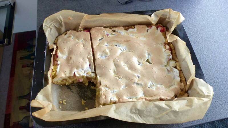 … und wieder hat Bernadette etwas Leckeres für uns Schleckermäulchen gezaubert – dieses Mal einen Rhabarberkuchen.