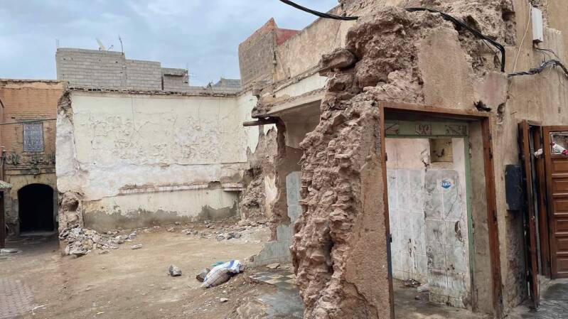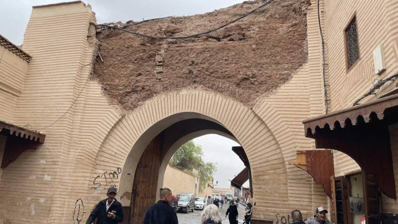 Auch in Marrakesch sind die Schäden des schweren Erdbebens noch gut zu erkennen. Selbst in der Medina sind viele Gebäude beschädigt und auch die Stadtmauer aus dem 12. Jahrhundert ist erheblich davon betroffen.