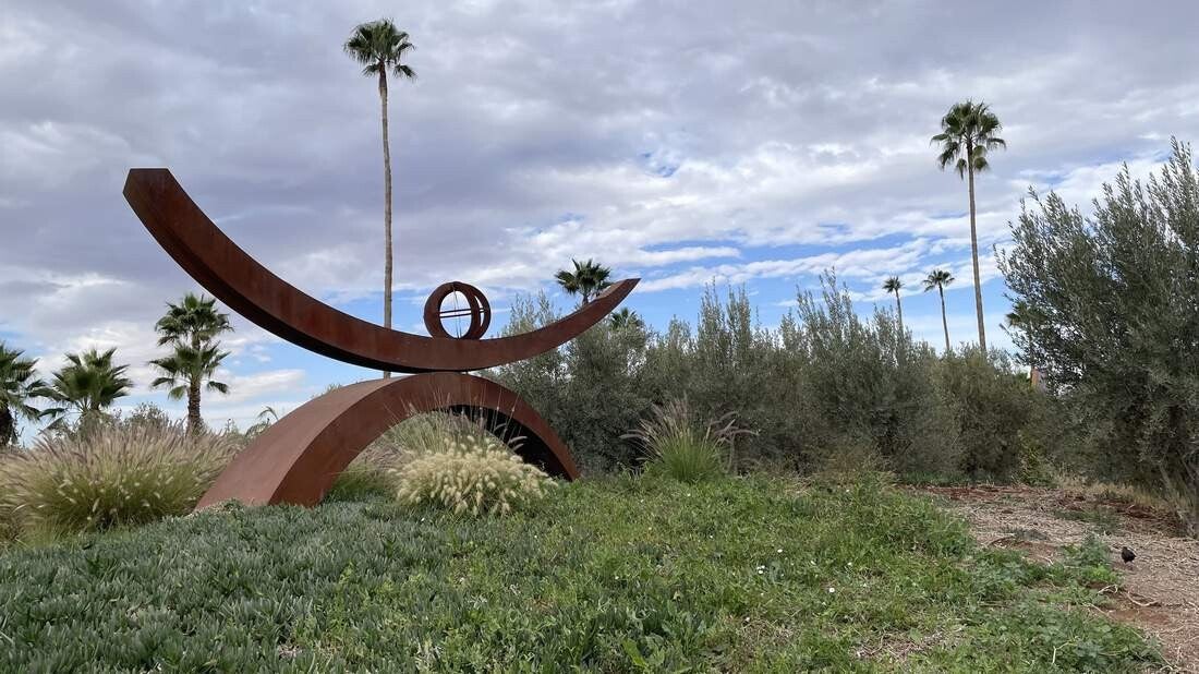 Wir übernachten unmittelbar vor dem Eingang und sind somit auch die ersten Gäste am nächsten Morgen. Da noch keine weiteren Besucher da sind, gönnen wir uns erstmal ein gemütliches Frühstück auf der Terrasse der Cafeteria. Von hier genießen wir eine tolle Aussicht auf die naheliegenden Gipfel des Atlasgebirge. Danach starten wir in aller Ruhe und Entspanntheit unseren Rundgang durch den "Kunstgarten". Kurz vor Ende unserer Besichtigung treffen die ersten Touristenbusse aus dem nahegelegenen Marrakesch ein – dann ist es an der Zeit für uns zu gehen.