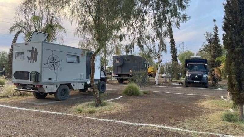 Auf kleinen Nebenstraßen und durch verwinkelte Vororte nähern wir uns Marrakesch. Auf einem Campingplatz am Stadtrand lassen wir uns für die Nacht nieder. Der Platz ist nicht mal zur Hälfte gefüllt. Doch überwiegend sind es Wohnmobile aus Europa, die dem Winter in ihrer Heimat entfliehen und mit dem milden Klima in Marokko eintauschen. Selbst den Hühnern scheint dieser Platz recht gut zu gefallen.
