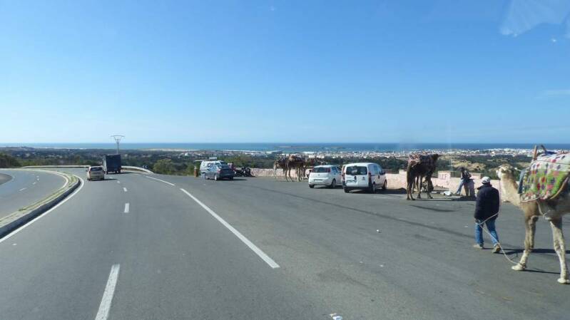 Obwohl Safi eine schöne Medina haben soll, lassen wir die Hafenstadt mit dem zweitgrößten Industriestandort des Landes aus Zeitgründen links liegen. Die Straße verläuft größtenteils der Küste entlang und bietet uns ständig abwechslungsreiche Aussichten auf das Meer.