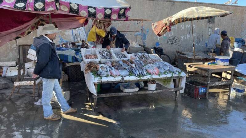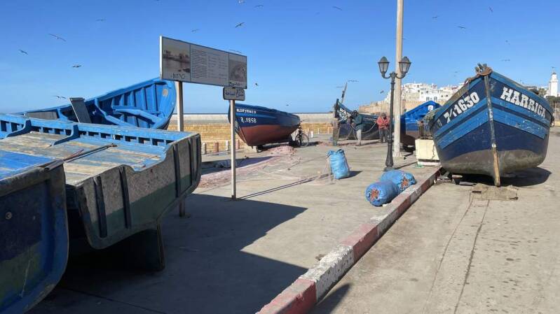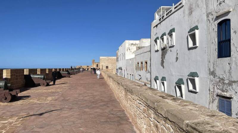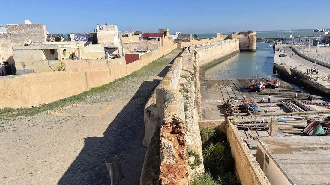 Durch die Medina und entlang der Stadtmauer erreichen wir den Hafen. Dort sind es hauptsächlich die blau gefärbten Fischerboote, die reichlich Fotomotive bieten. Ebenso kann man den frisch gefangenen Fisch direkt von den Fischer erwerben und an Ort und Stelle zubereiten lassen. Die gesamte Hafenanlage sowie die angrenzende Festung mit Stadtmauer wurden im 16. Jahrhundert von den damaligen portugiesischen Besatzern erbaut.