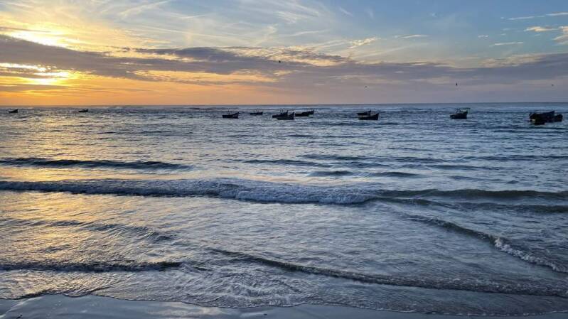 Wir folgen jetzt der Küstenstraße immer weiter nach Norden. Zumeist sind wir auf gut ausgebauten Straßen unterwegs, doch durch so manche Ortschaften lässt die Qualität manchmal auch sehr zu wünschen übrig. Einen tollen Übernachtungsplatz finden wir direkt am Strand und dürfen am Abend einen farbenprächtigen Sonnenuntergang miterleben.