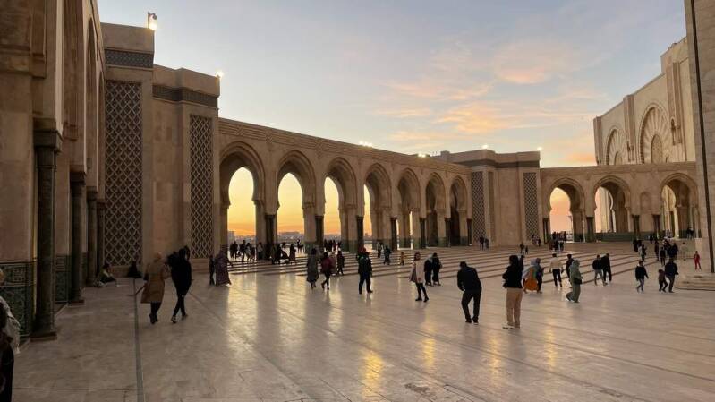 Frisch gestärkt setzen wir unsere Fahrt fort und lassen entlang der kilometerlangen Promenade El-Jadida hinter uns. Wir folgen nun dem Schild in Richtung Casablanca. Eigentlich wollten wir auch die größte Stadt Marokkos umfahren, doch hier befindet sich die "Hassan-II.-Moschee". Sie ist weltweit das drittgrößte und in Afrika sogar das größte islamische Gotteshaus. Zudem ist es auch "Ungläubigen" gestattet, die Moschee zu besichtigen – Grund genug für uns, sich in das Verkehrschaos von Casablanca zu stürzen.