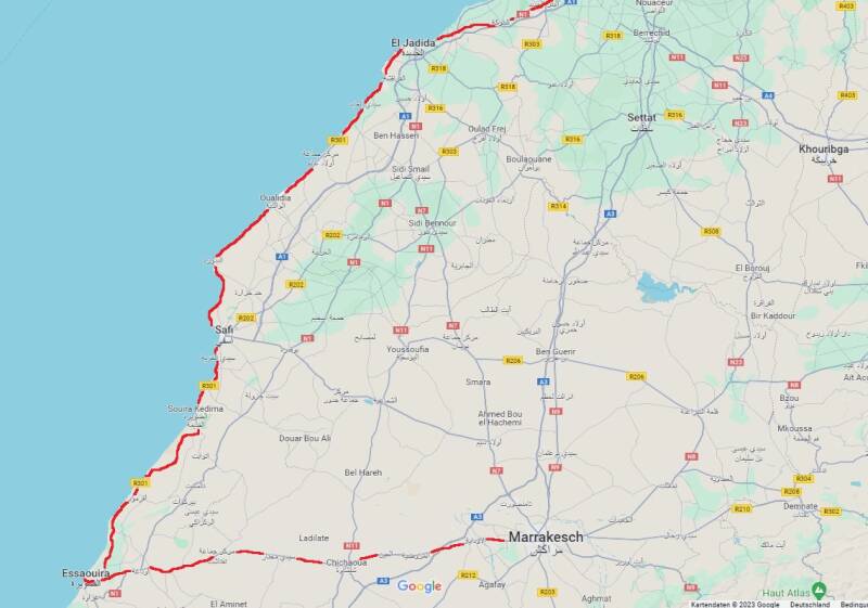 2023 Marokko (6) – ...über Marrakesch dem Atlantik entlang nach Norden