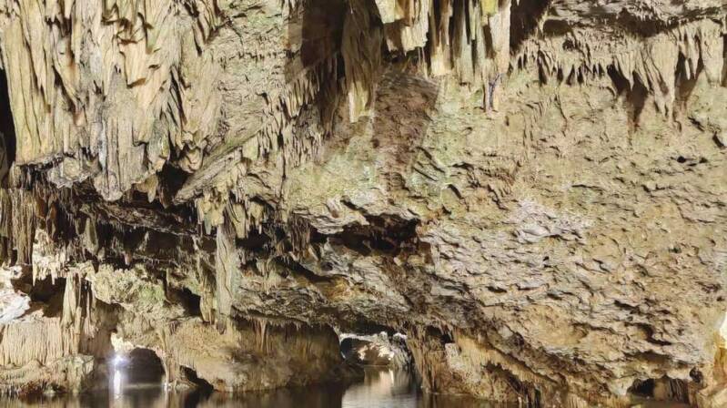 Ein weiterer Höhepunkt auf der Mani ist die Tropfsteinhöhle von Pyrgos Dirou. Mit kleinen Booten werden die Besucher durch das Felslabyrinth mit überwiegend engen Durchfahrten und unzähligen Höhlenräume geschippert. Danach hätte man noch die Möglichkeit, Teile der Höhle zu Fuß zu erkunden. Leider ist aufgrund von Saisonvorbereitungen nur das Besichtigen der Höhle von den Booten aus möglich. Bereits die Anfahrt ist erneut ein großer Genuss mit tollen Aussichten zu beiden Seiten.