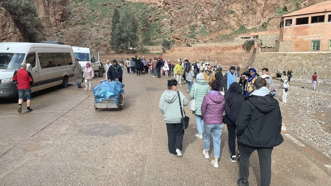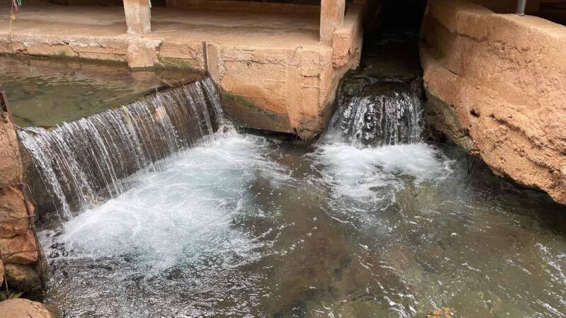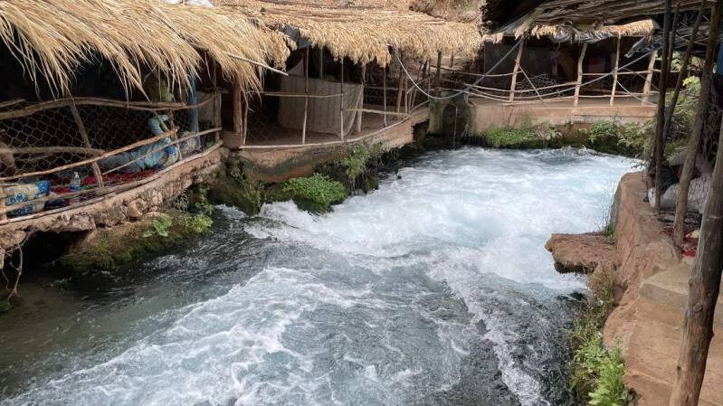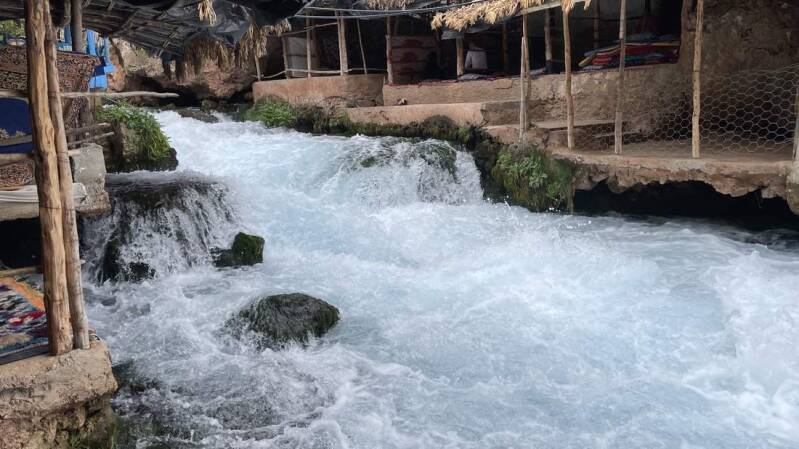 Kurz darauf erreichen wir die Quellen des längsten Flusses des Landes, dem „Oued Oum er-Rbia“. Auf kürzester Distanz vereinen sich mehrere Quellen aus den Bergen zu einem schnell fließenden Bergbach. Eine davon ist überraschenderweise sehr salzhaltig. Die oberste Quelle hingegen ist ein Wasserfall, der aber momentan nur wenig Wasser für den Fluss beiträgt. Entlang des jungen Gewässers reihen sich unzählige kleine Cafés und Restaurants aneinander. Bei einem gemütlichen Kännchen Tee kann man ganz entspannt dem Rauschen des Wassers folgen.