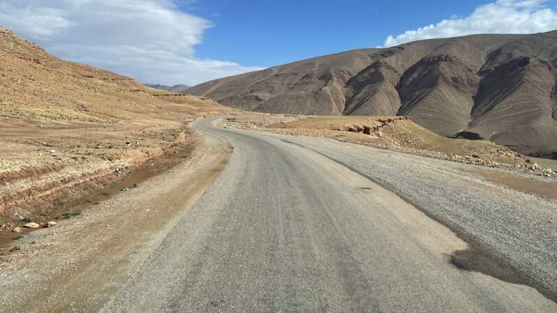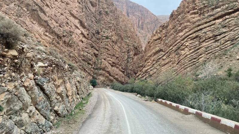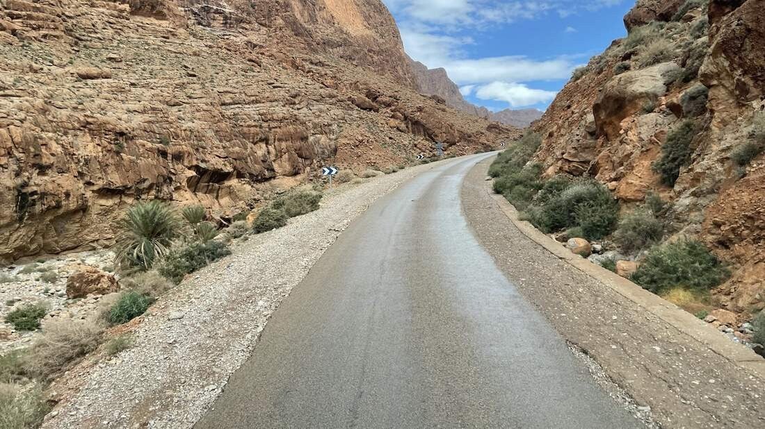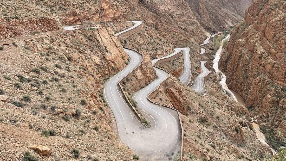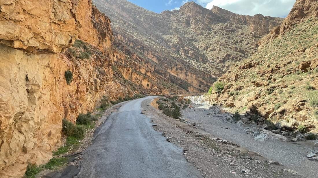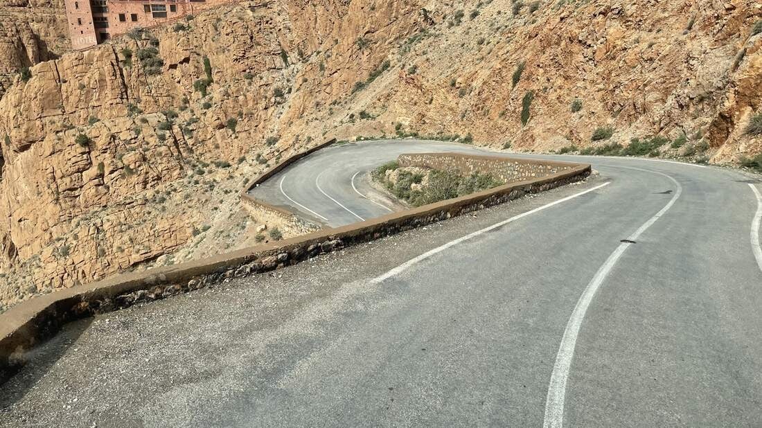 ...auch Marokko hat einen "Horseshoe Bend". Durch eine atemberaubende alpine Landschaft geht es jetzt langsam wieder bergab. Bedingt durch die schweren Niederschläge der letzten Wochen, wurden hier nicht nur die Straßen in Mitleidenschaft gezogen.