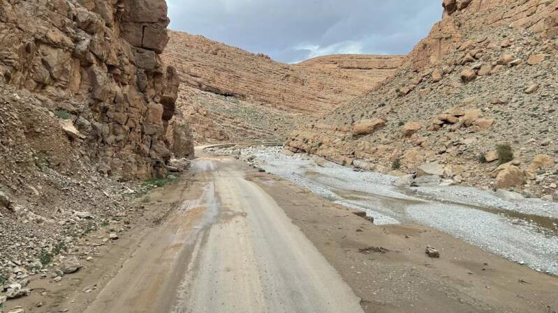 Hinter dem „Tunnel der Legionäre“ beginnt der „Ziz Canyon“. Die Fahrt entlang des gleichnamigen Flusses gefällt uns sehr gut, nur leider ist es etwas trüb und regnerisch geworden. Da hilft am Abend natürlich eine leckere Tajine ganz locker drüber hinweg.