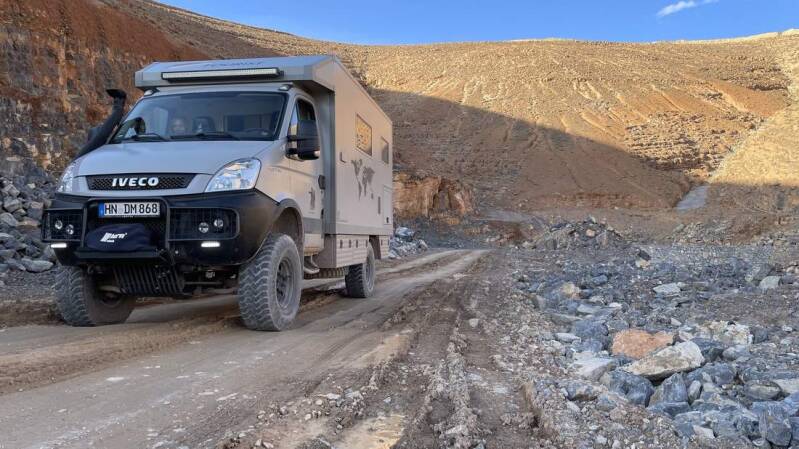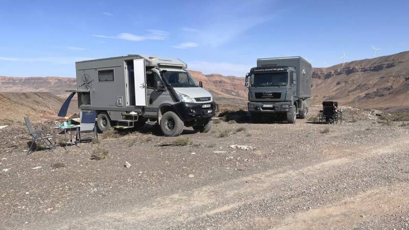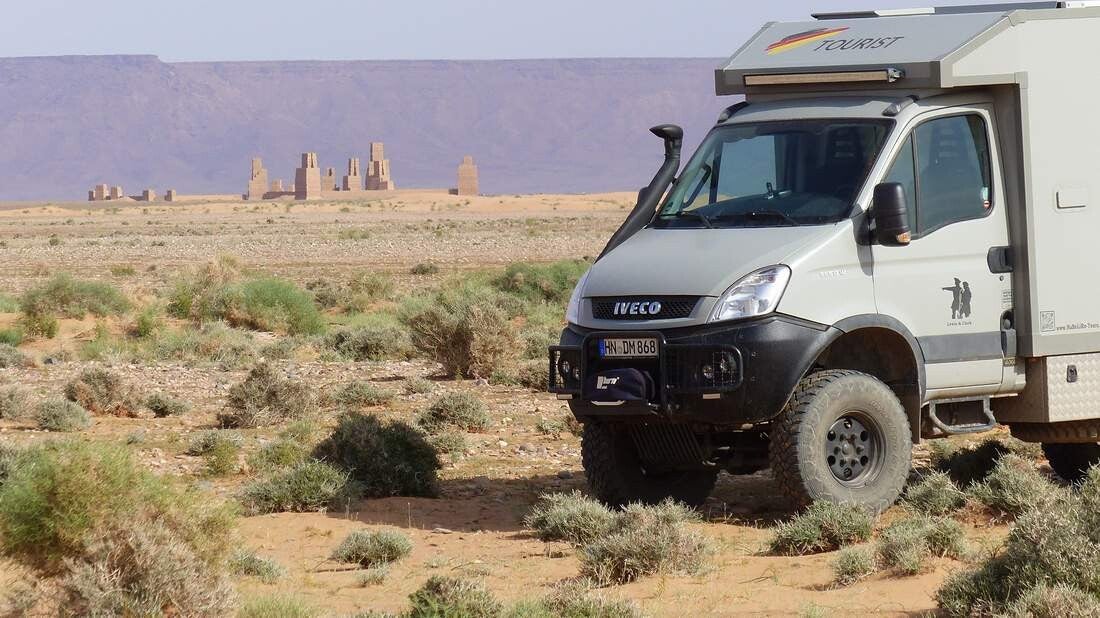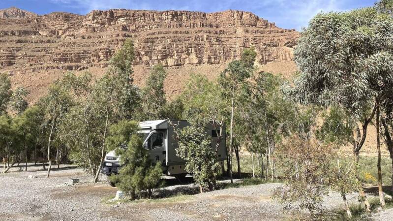Nach einem erfolgreichen Vollwaschgang in Boumalme Dades treffen wir erneut auf Susi und Robby mit ihrem MAN. Nach einem gemütlichen Frühstückstee fahren wir gemeinsam weiter. Es geht jetzt über den knapp 2.200m hohen „Tizi n´Tazazert“. Erneut werden wir mit einer wunderschönen Landschaft und einem ruhigen Schlafplatz in der Wüste belohnt.
