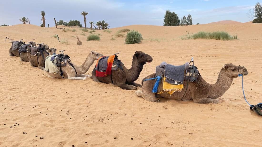 Schöne Flecken ziehen natürlich auch Touristen an. So gibt es in den angrenzenden Orten, neben den zahllosen Cafés und Restaurants, auch reichlich Anbieter für Wüstentouren. Diese können mit Geländewagen, Quad und Motorrad wie auch auf dem Rücken der Kamele durchgeführt werden. Daher gleicht dieser Teil des Erg Chebbi zwischenzeitlich leider einem riesigen Rummelplatz – sehr schade. Wir möchten uns gar nicht erst vorstellen, wie es hier wohl in 10 Jahren aussehen könnte.