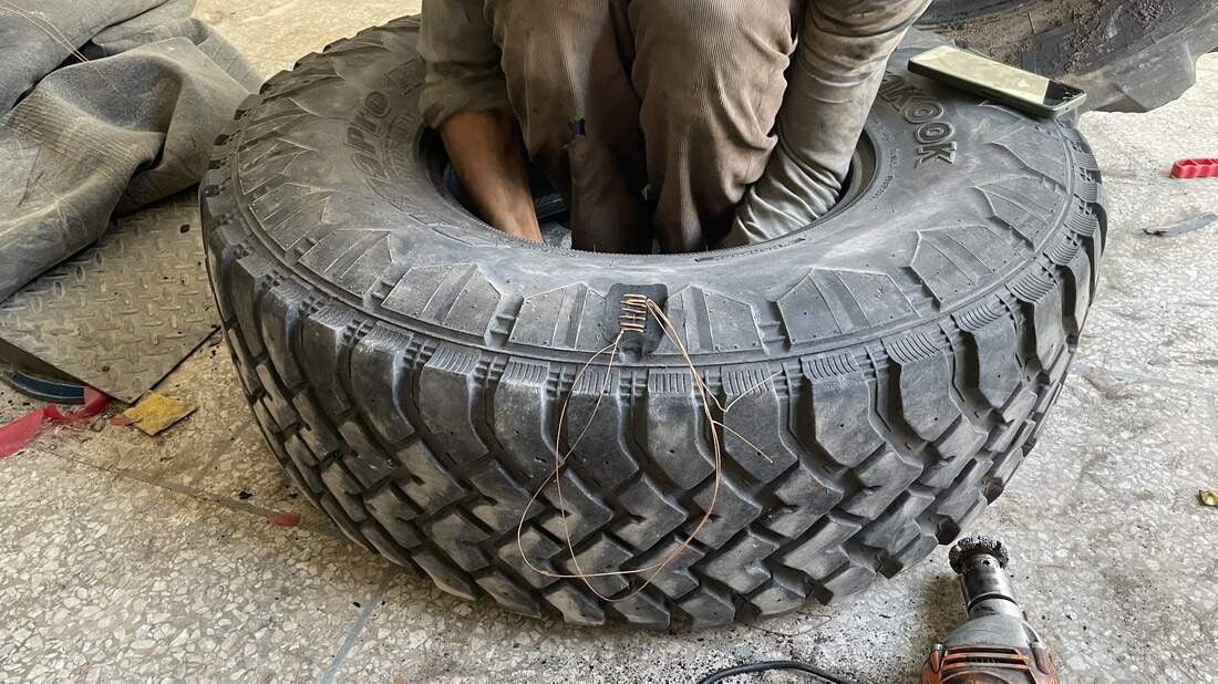 Ohne einen vollwertigen Ersatzreifen wollen wir eigentlich nicht mehr in die Wüste rausfahren. Doch in Rissani finden wir den Reifenspezialisten unseres Vertrauens. Mit einer Selbstverständlichkeit und absolut professionell flickt der Profi den Cut und vulkanisiert auf beiden Seiten die Nahtstelle – was kann jetzt noch schief gehen. Sicherlich würde beim Anblick des Reifens jeder TÜV-Prüfer in unserem Lande in eine Schnappatmung verfallen. Aber sehen wir´s mal so – sind wir nicht alle auf Nachhaltigkeit aus?