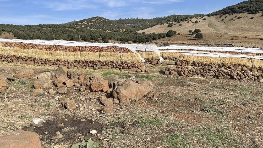 Über viele Kilometer schlängelt sich jetzt die Straße durch dichte Wälder hindurch. Immer wieder sehen wir zu beiden Seiten der Straße die sporadischen Behausungen der hier lebenden Nomaden. Die Straßenverhältnisse können wir hier oben nicht gerade als besonders gut bezeichnen, was aber die Fahrfreude keineswegs einschränkt. Beim näherem Betrachten entpuppen sich die seltsamen Mauern auf den Feldern um uns herum als aufgeschichtete Zwiebeln zum Trocknen – auch eine interessante Variante.
