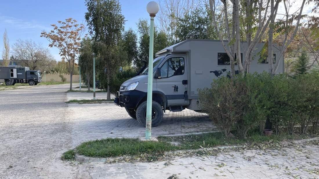 Oberhalb einer verlassenen Arbeitersiedlung finden wir unser Nachtlager. Am späten Nachmittag schauen wir uns die "Ghosttown" etwas genauer an. Alles was noch irgendeinen Wert hatte, wurde geplündert. Einzig die Moschee ist nahezu unversehrt und scheint noch in Benutzung zu sein. Nach einem farbenprächtigen Sonnenuntergang gibt’s dann noch Heldengeschichten am Lagerfeuer.