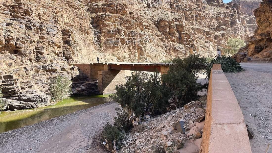 Gemeinsam fahren wir zu den ehemaligen Bleiminen von Aouli. Auf holpriger Piste geht es durch einen schmalen Canyon und über eine abenteuerliche Brücke in den verlassenen Ort hinein. Ein paar wenige Einheimische sind hier noch am Abbauen, um sich ihren schmalen Lebensunterhalt zu sichern. China und Indien sind wohl die Hauptabnehmer der geringen Vorkommen von Kupfer und Blei. Hingegen werden gefundene Mineralien und Fossilien den Touristen angeboten bzw. von Händlern aus der ganzen Welt aufgekauft.
