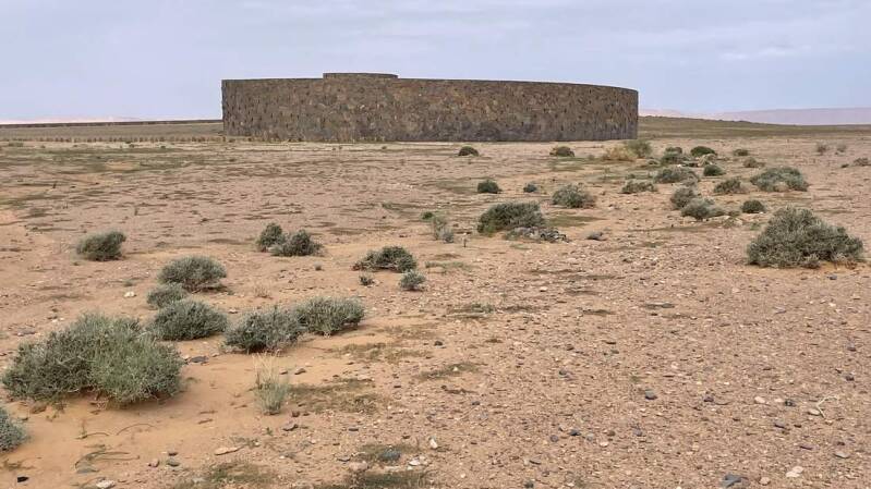 Vorbei an Erfoud befinden sich die Werke des Künstlers Hannsjörg Voth, die wir uns anschauen wollen. Allerdings müssen wir dafür eine etwas holprige Anfahrt durch ein trockenes Flussbett sowie über Stein- und Sandpisten in Kauf nehmen – macht aber auch mächtig Spaß. Mitten in der Wüste erbaute der gebürtige Münchner drei Kunstwerke, in denen er auch heute noch zeitweise lebt.