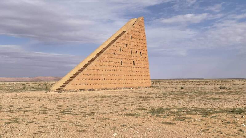Das letzte Werk des Künstlers ist zwar etwas weiter entfernt, aber schon aus größerer Entfernung zu erkennen – er nannte es „Die Himmelstreppe“. Über 52 Stufen kommt man bis nach oben und hat von dort einen fantastischen Rundumblick über die Wüste.
