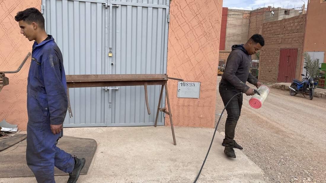 In Tinghir füllen wir erst Mal unsere Frischevorräte wieder auf. Ebenso ist der längst fällige Wechsel der Bremsflüssigkeit angesagt. Dies können wir in „Kamals“ Werkstatt absolut professionell und kostengünstig erledigen lassen. Zudem werden auch gleich die beiden Luftfilter wieder ausgeblasen und gereinigt – danke an Kamal und sein engagiertes Team.