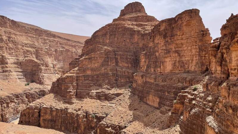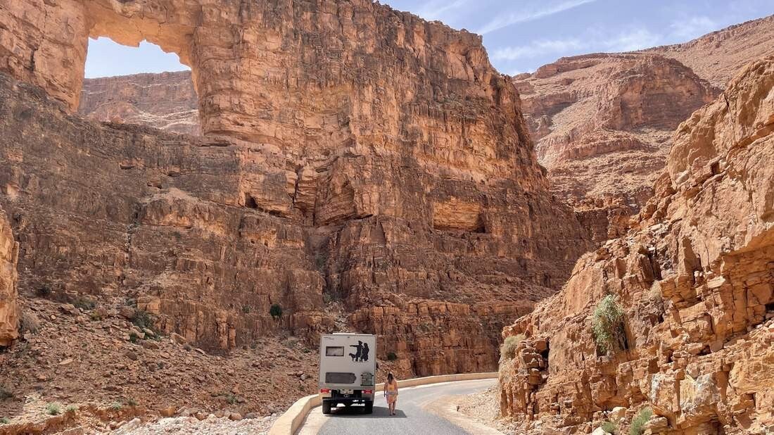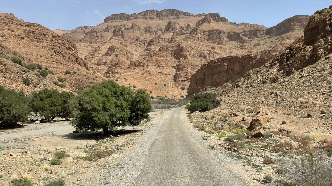 Über kleine und kurvige Straßen, vorbei an verfallenen Berberdörfern, fahren wir zum „Aoukerda Canyon“. Die Fahrt macht mächtig Spaß, da auch das Wetter sich von seiner besten Seite zeigt. Von der Schönheit und der Einzigartigkeit dieses Canyons haben wir im Vorfeld schon vieles gelesen. Das was wir aber zu sehen bekommen, übertrifft jedoch unsere ganzen Vorstellungen