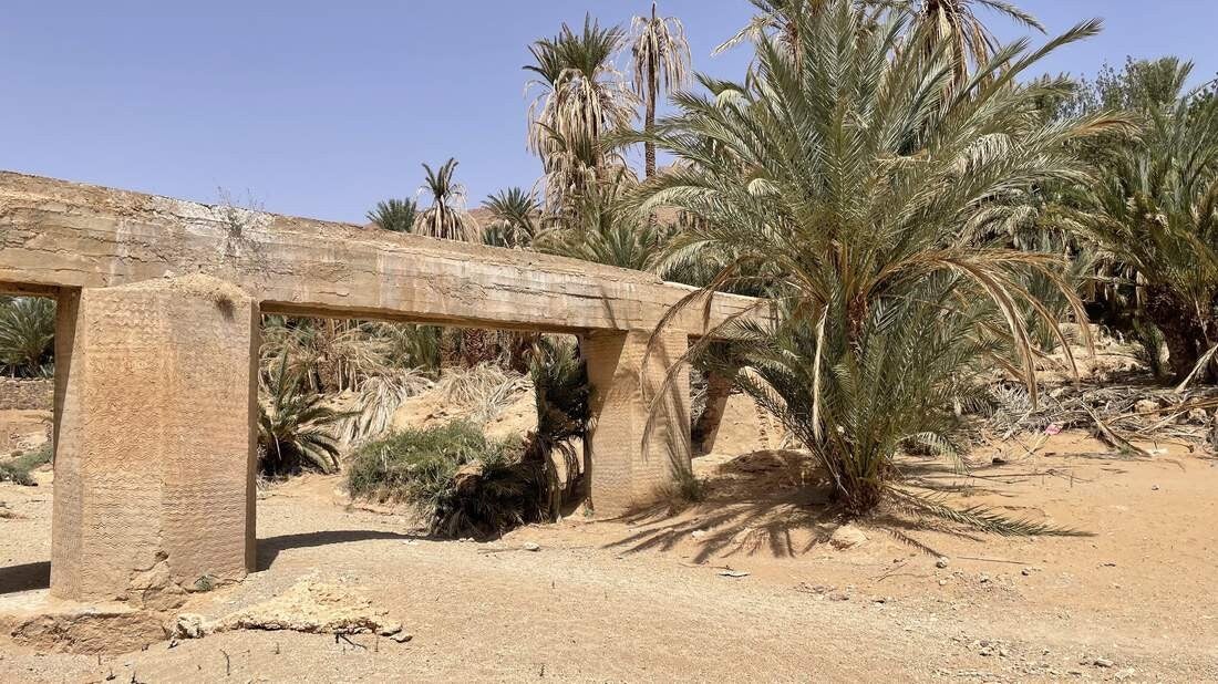 In dem kleinen Oasenörtchen Icht besuchen wir den alten Teil des Dorfes. Leider ist ein Großteil der Häuser bereits verfallen und nur noch wenige Menschen leben hier. Durch ein cleveres Bewässerungssystem, wird das kostbare Nass aus dem nahegelegenen Anti-Atlas hierher geleitet. Deshalb ist es fast das ganze Jahr über möglich, hier Ackerbau und Viehzucht zu betreiben.