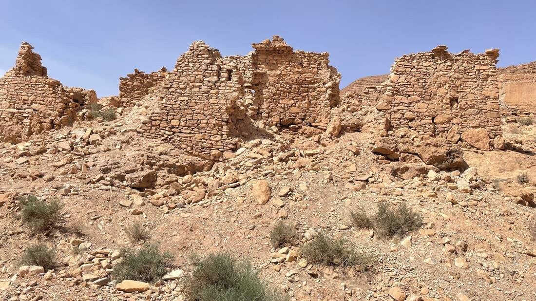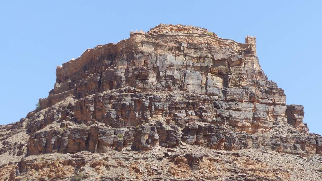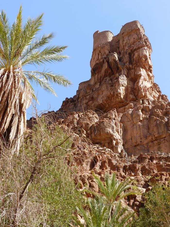 Eher zufällig erfahren wir von den beiden „Agadiren“ bei Amtoudi – also fahren wir hin. Über einen gut zu begehenden Trampelpfad geht es hoch zum „Agadir Id Issa“, der über dem Ort thront. Wir nehmen uns viel Zeit und schauen uns fast jeden Winkel der etwa 900 Jahre alten Speicherfestung an. Überall wurden Kammern in den Fels gehauen oder kleine Steinhäuser innerhalb der Festung gebaut, die als Vorratskammern dienten. Selbst die Dächer wurden so konstruiert, dass das Regenwasser gut gesammelt werden konnte. Ebenso waren reichlich Bienenstöcke vorhanden. Dank der guten Rundumsicht, war dieser Agadir nur schwer einzunehmen.