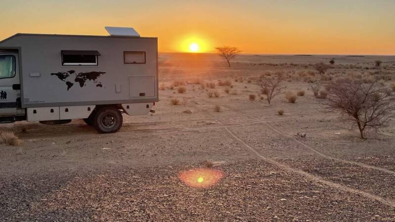 Was des einen Leid, ist des anderen Freud. In dieser, für uns teilweise atemberaubenden Landschaft, finden wir jeden Tag einen tollen Übernachtungsplatz. Wir werden mit farbenprächtigen Sonnenunter- wie auch Sonnenaufgängen beschenkt.