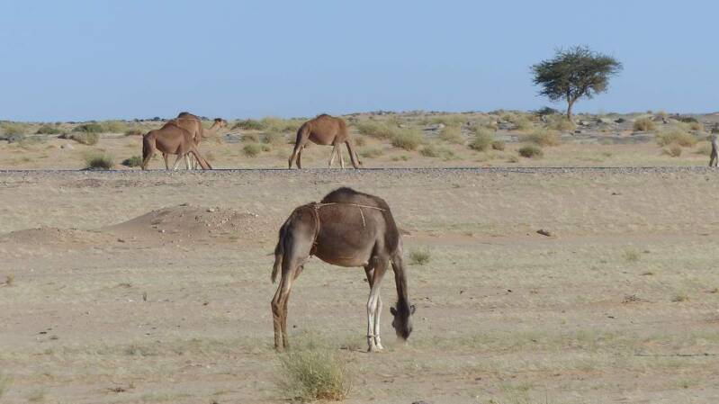 Verläuft der Track zu nahe an den Schienen, müssen wir höllisch auf die vielen herumliegenden und zumeist auch scharfkantigen Eisenteile aufpassen. Schon so manchem Offroad Fahrer bescherten diese Teile einen platten Reifen. Ebenso sind reichlich Kamele entlang der Bahnlinie anzutreffen – doch nicht jedes schafft es rechtzeitig von den Gleisen zu kommen.