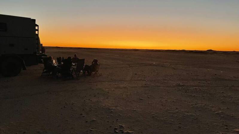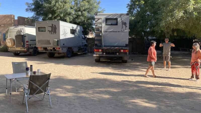 Die nächsten Tage verbringen wir entspannt in Atar im Camp "Bab Sahara". Hier können wir uns wieder lecker bekochen lassen, unsere Wäsche waschen, das Fahrzeug auf Vordermann bringen und treffen zudem weitere Langzeitreisende. Dabei werden unter Gleichgesinnten auch die aktuellsten Tipps ausgetauscht, die jeder wissen sollte – egal, in welche Richtung man fährt.