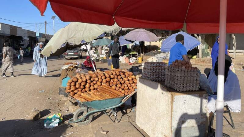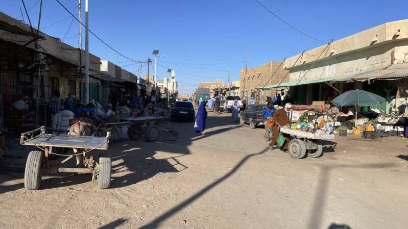 An einem der Tage bummeln wir auch durch den Ort Atar. Wobei bummeln hierfür überhaupt nicht das richtige Wort ist. Nicht nur, dass wir uns im drittärmsten Land der Welt befinden, auch den meisten Menschen hier fehlt es an Bildung, Verständnis und Herzlichkeit. So werden wir nicht nur ständig angebettelt, sondern müssen auch oft genug miterleben, wie auf Esel, Ziegen oder Hunde eingedroschen wird. Auch die Märkte sind z.T. doch sehr überschaubar sortiert. Müll ist immer und überall gegenwärtig. Und wenn es hier schon eine "Müllabfuhr" gibt, kann man sicher sein, dass das Gesammelte sehr ortsnah in der Wüste entsorgt wird.